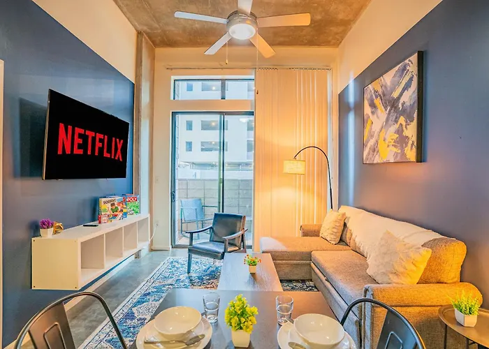 O Stylish 2Bd - Cdt - Gym, Pool, Parking - Sleep 8 Apartamento dispõe de cozinha equipada e irá fornecer forno e máquina de lavar loiça durante a sua estadia. A paragem de autocarro Roosevelt St & 3rd St fica bem ao virar da esquina de do apartamento. Os hóspedes podem aproveitar bilhar para melhorar os seus objetivos de fitness.
